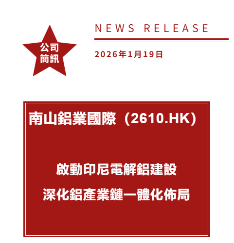 南山鋁業國際(2610.HK)啟動印尼電解鋁建設,深化鋁產業鏈一體化佈局