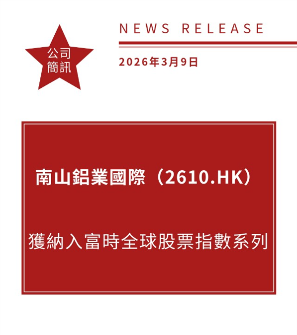 南山鋁業國際(2610.HK)獲納入富時全球股票指數系列